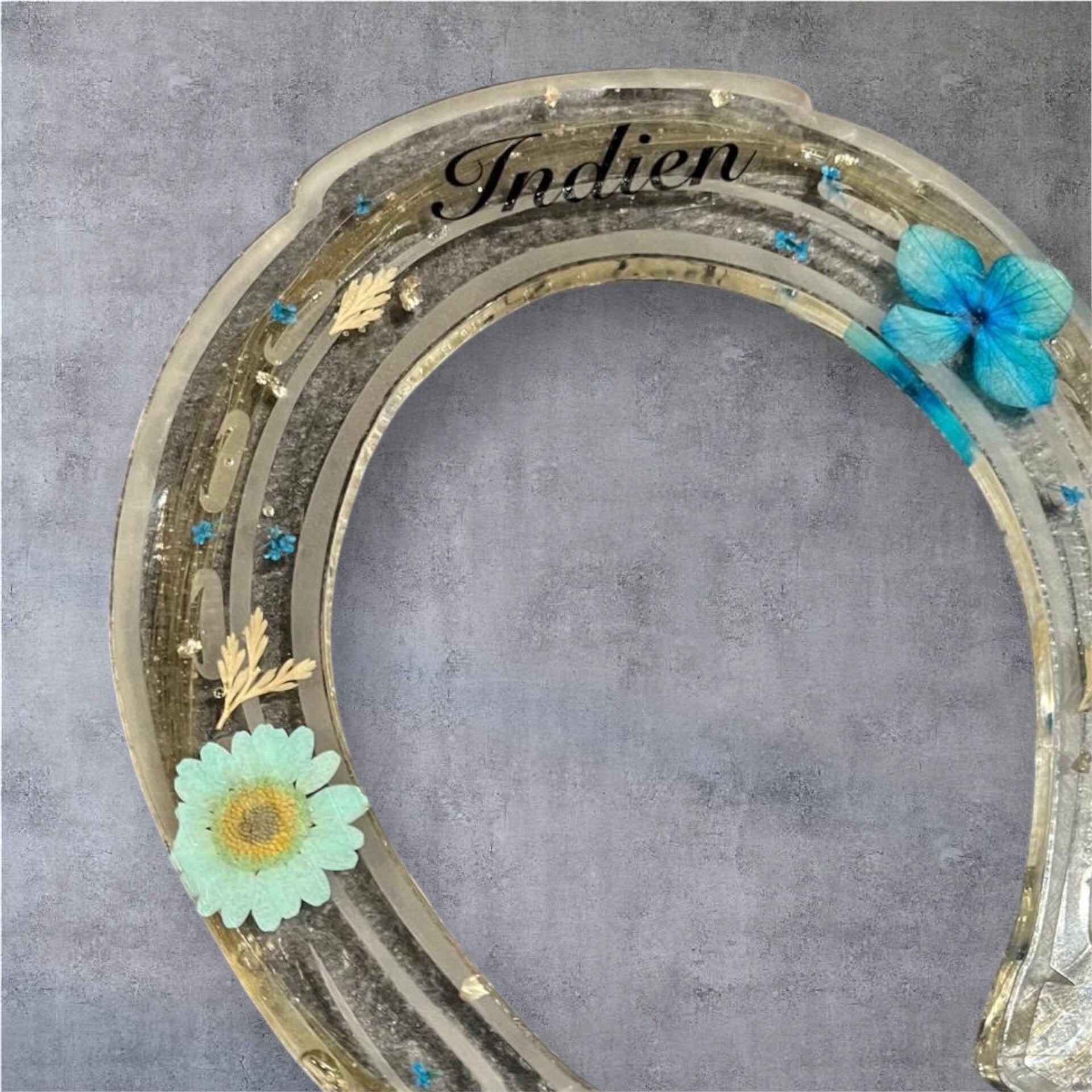 Nos fers à cheval en résine sont conçus comme de véritables objets-souvenirs : élégants, durables et entièrement personnalisables. Au cœur de chaque création, nous pouvons intégrer soigneusement des crins sélectionnés par vos soins, pour capturer ce lien si particulier qui vous unit à votre compagnon.